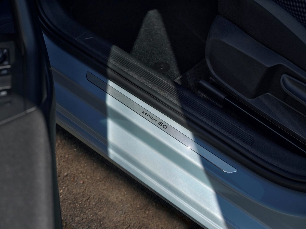 Esthétiquement parlant, on reconnait notamment la Polo Edition 50 grâce au badge « 50 » sur le montant des portes, dans les ouvertures des portes, sur le volant et sur le tableau de bord côté passager. Dans l’habitacle, les garnitures de tableau de bord en noir brillant et pédalier en inox brossé apportent en outre une touche unique.