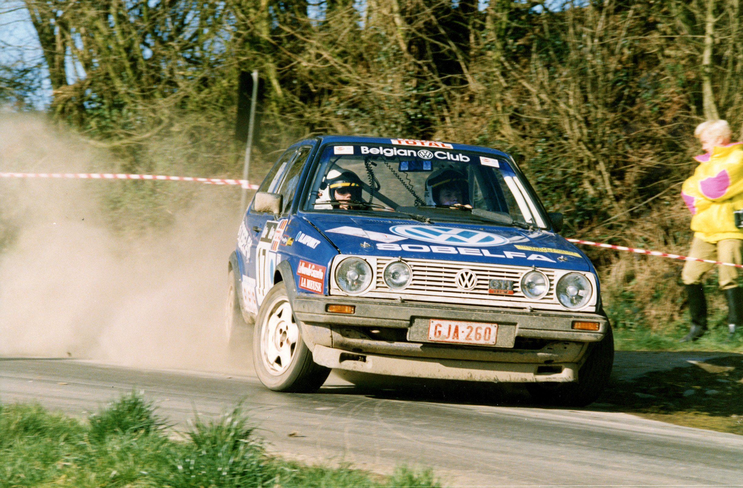 En 1988, le Belgian VW Club et Bernard Munster avaient en effet mis un terme à leur relation avant le Rallye du Condroz et Bruno s’était alors vu proposer le volant de la Volkswagen Golf II GTI officielle. « Mon copilote, Dany Delvaux, avait négocié avec J.G. Mal-Voy, le responsable du Belgian VW Club », se souvient Bruno. « Ça s’était très bien passé au Condroz et en 1989 nous avons poursuivi notre collaboration. Avec le soutien de mon sponsor et du Belgian VW Club, j’avais pu abandonner mon travail à la SNCB et me concentrer à 100% sur le rallye. C’est aussi avec le Club – mais sur une Audi 90 quattro – que j’ai participé à ma première épreuve mondiale, le Rallye de l’Acropole. Un souvenir complètement dingue pour le pilote amateur que j’étais alors. Bref, le Belgian VW Club m’a offert mon premier volant officiel et je ne l’ai jamais oublié ! »